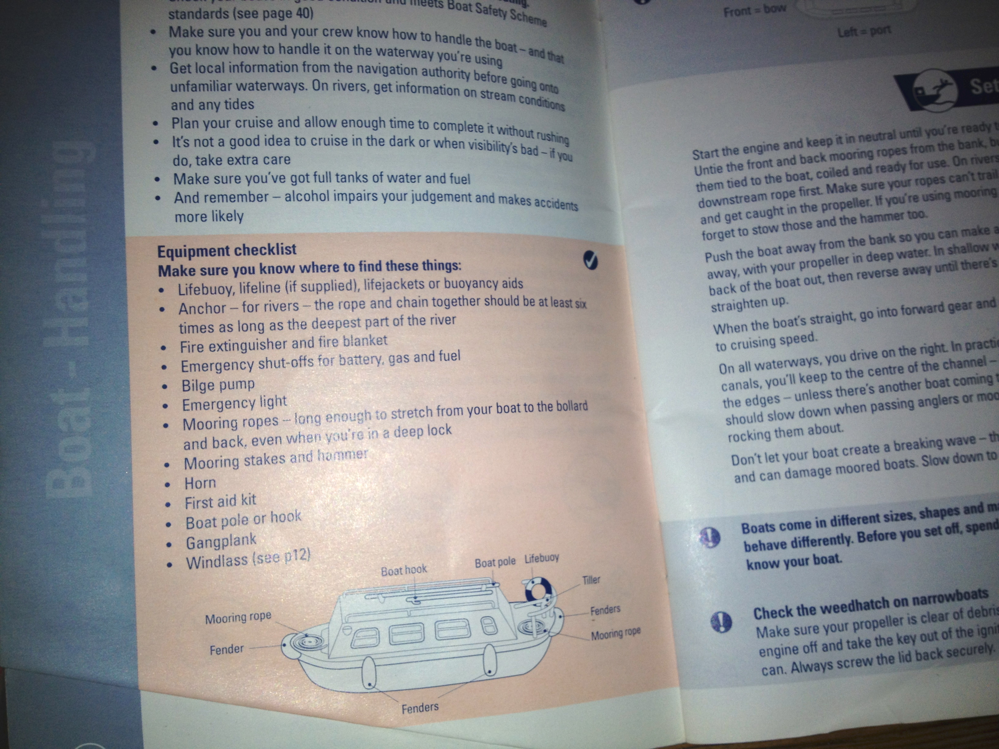 Just got back on board tonight and was rooting through the cupboards for something. I didn’t find what I was looking for but I did come across something interesting. A couple of booklets that sort of explain what I should be doing. One is from the Environment Agency and has a handy glossary of boaty terms and diagrams.