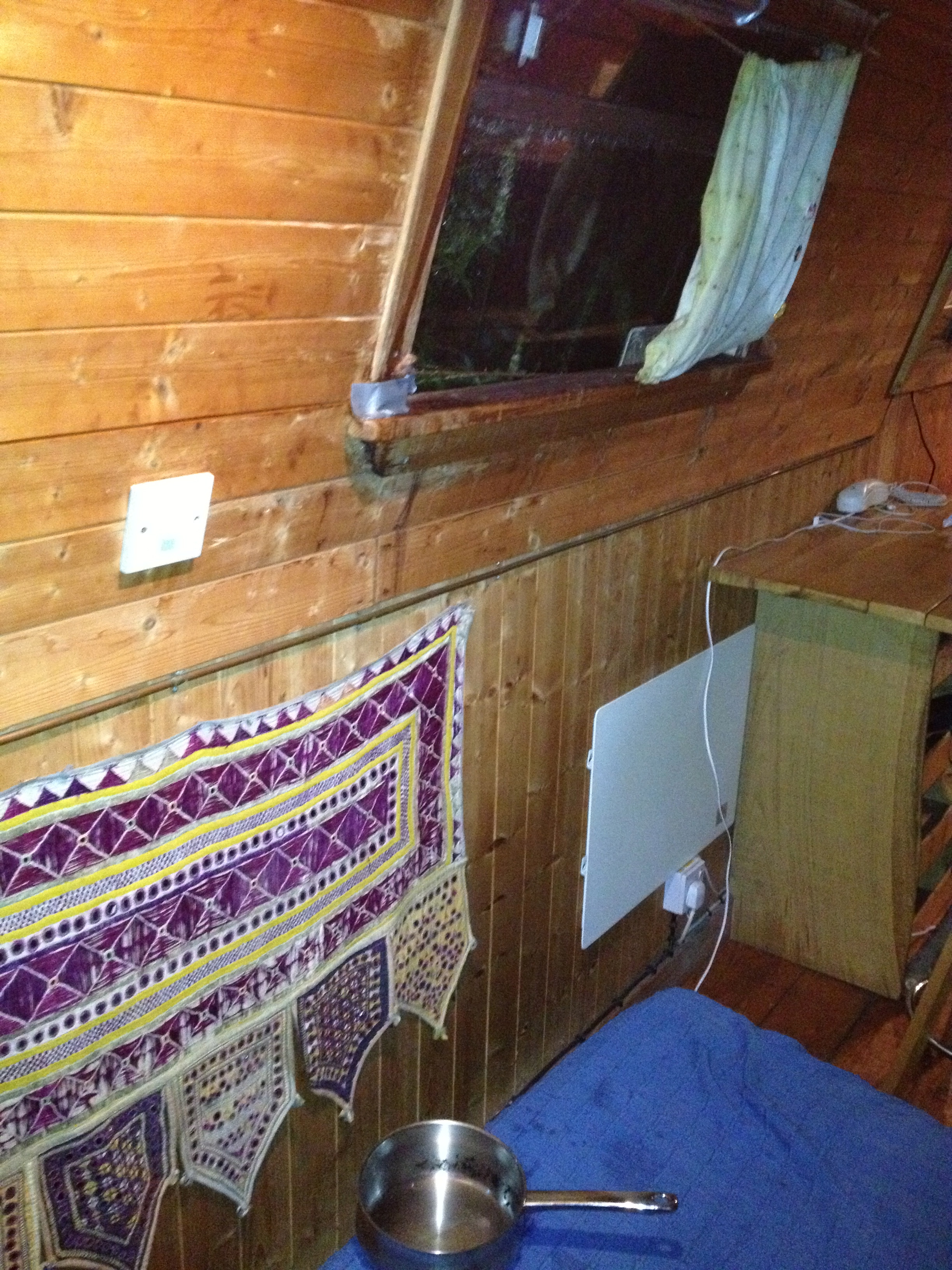 The temperature is more of a problem, it’s really not easy to keep a fire going all night and that it’s so far from the bed means waking up is like having slept a bit rough. I either need to get better at this or invest in some cardboard. The leaks continue too, it’s not altogether homely.