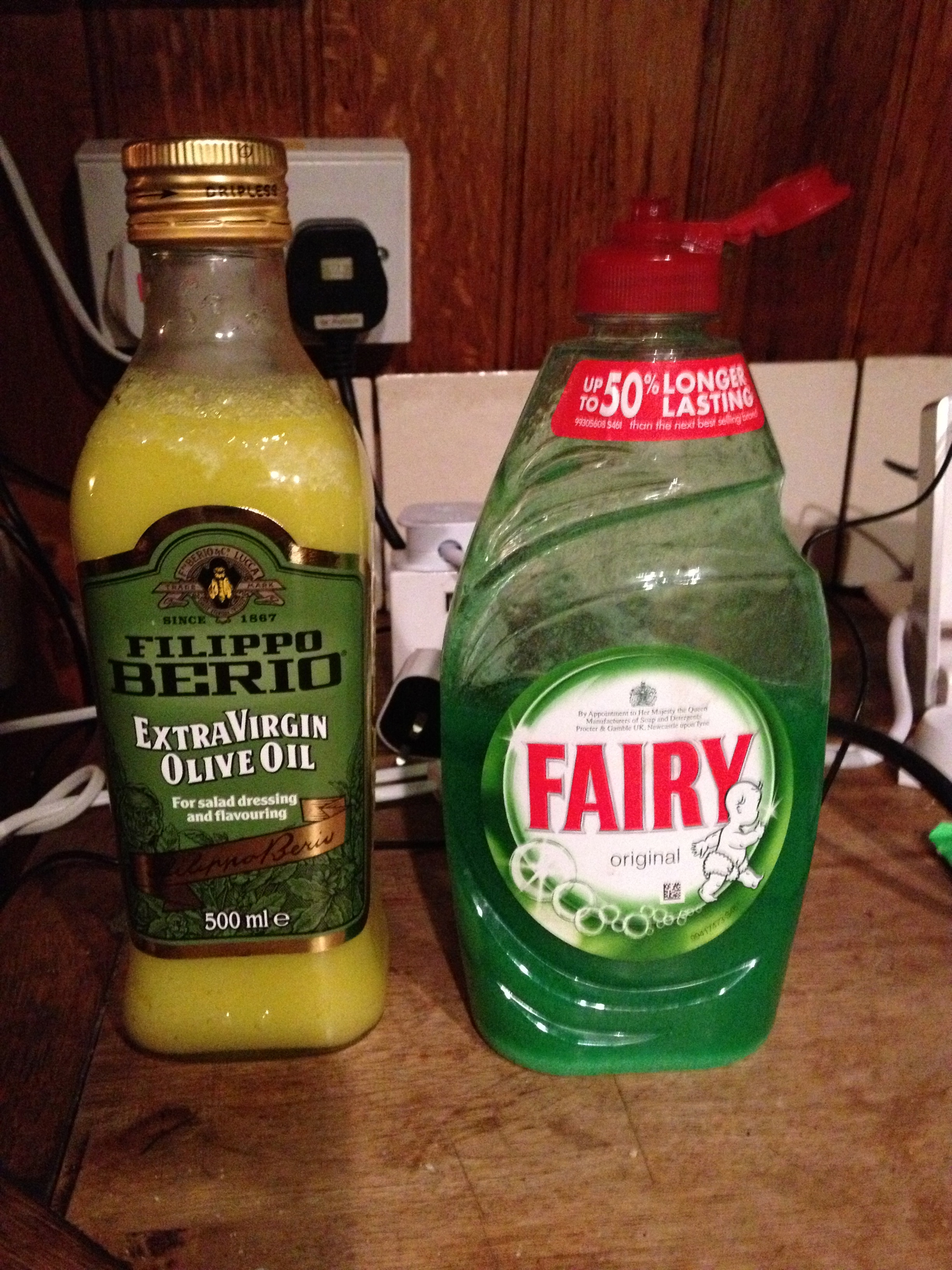 It seems olive oil, and washing up liquid go all thick. Oo-er.